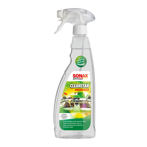 The gentle cleaner for all surfaces in the car’s interior — e.g. glass, upholstery, plastic, Alcantara, leather, etc. Gently removes even stubborn dirt and leaves behind a pleasant fresh fragrance. Also ideal for streak-free cleaning of glass surfaces, sensitive touchscreen displays and piano lacquer. With odour eradicator.