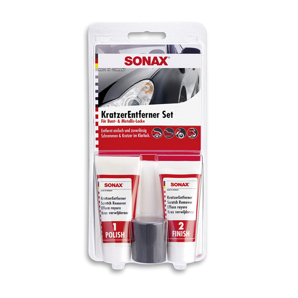 Polish kit for manually removing scratches and marks from the clear coat. In 2–3 easy steps, even deep scratches can be removed, provided that they have not reached the base coat or primer. For standard and metallic paint, as well as scratch-resistant paint.